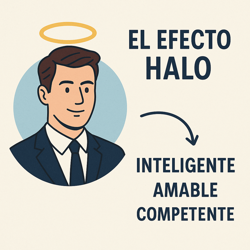 A eso se le llama efecto halo, un sesgo cognitivo que nos lleva a extrapolar una característica positiva o negativa de una persona a la valoración global que hacemos de ella. Es como si ese primer rasgo que percibimos creara un “aura” que ilumina (o ensombrece) todo lo demás.